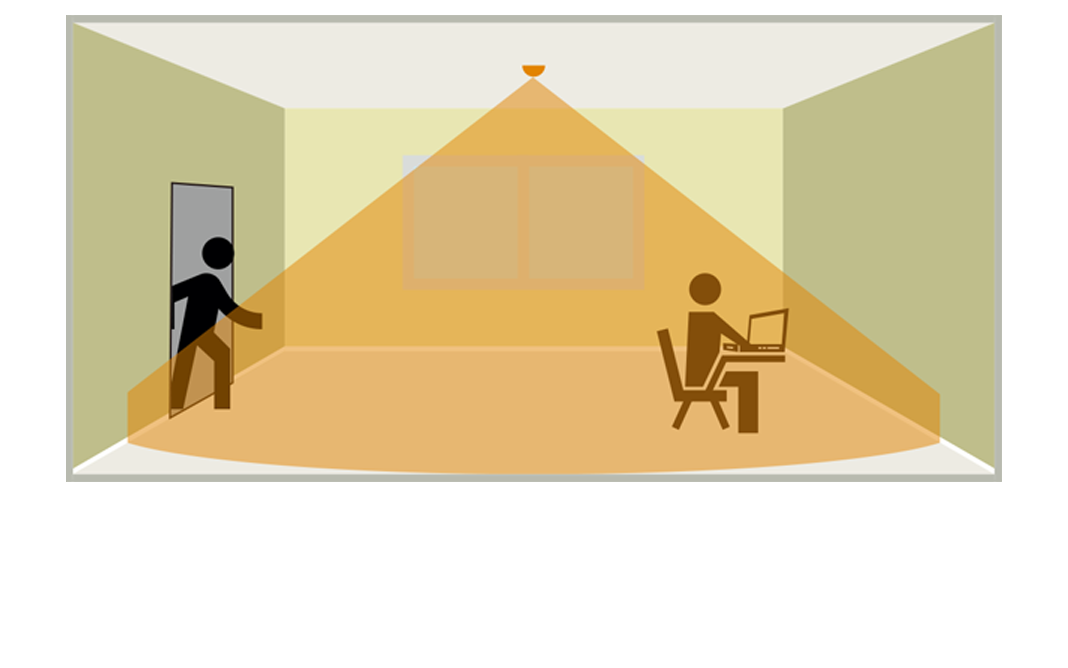The same 360° coverage as other ceiling mounting conventional detectors